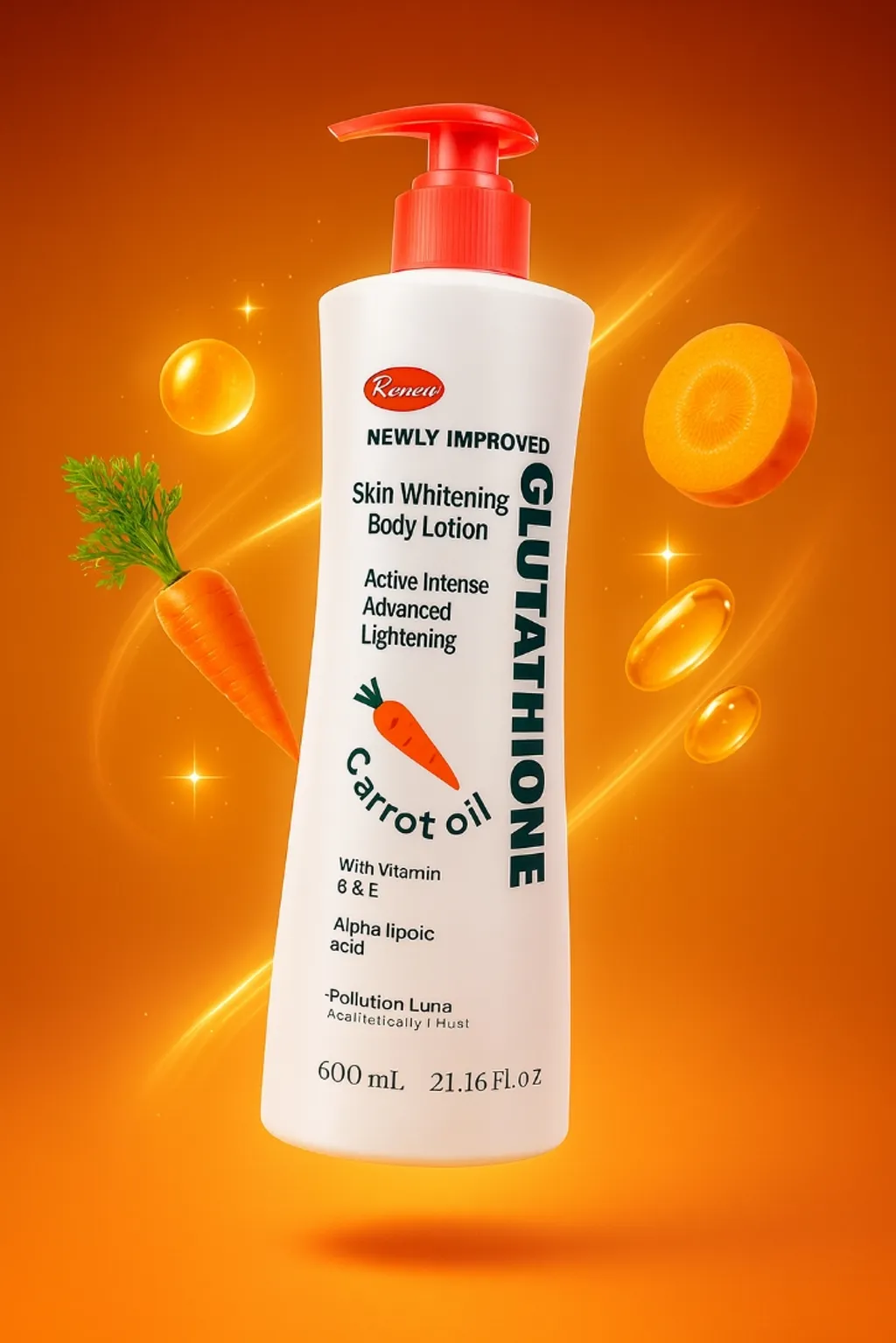 لوسیون بدن روشن کننده پوست گلوتاتیون با روغن هویج ۶۰۰ میلی لیتر برند renew